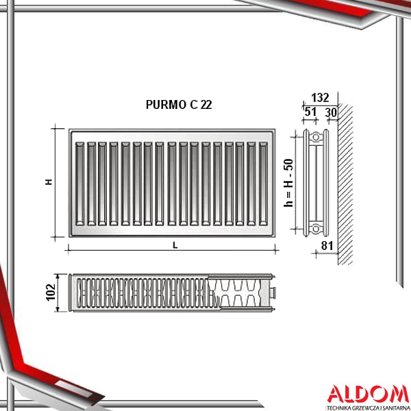 Purmo Compact (C) to stalowe grzejniki płytowe z bocznym podłączeniem do instalacji. Stanowią idealne wyposażenie domowej instalacji grzewczej. Te pokojowe grzejniki polecane są jako urządzenia grzewcze montowane w sypialniach, pokojach dziennych, kuchniach. Montaż jest możliwy zarówno na ścianie jako grzejniki wiszące, opcjonalnie można uzyskać grzejniki stojące montując je na podłodze na specjalnych stojakach.