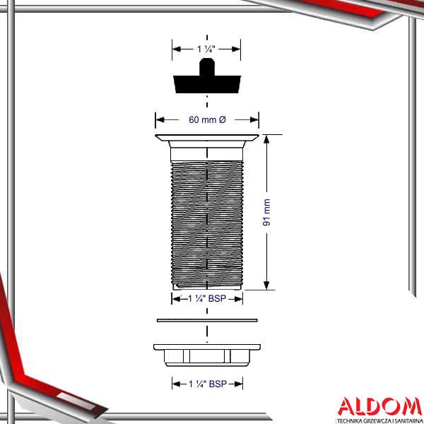 Spust umywalkowy 1.1/4"x91x60mm z korkiem gumowym, bez otworu przelewowego. |